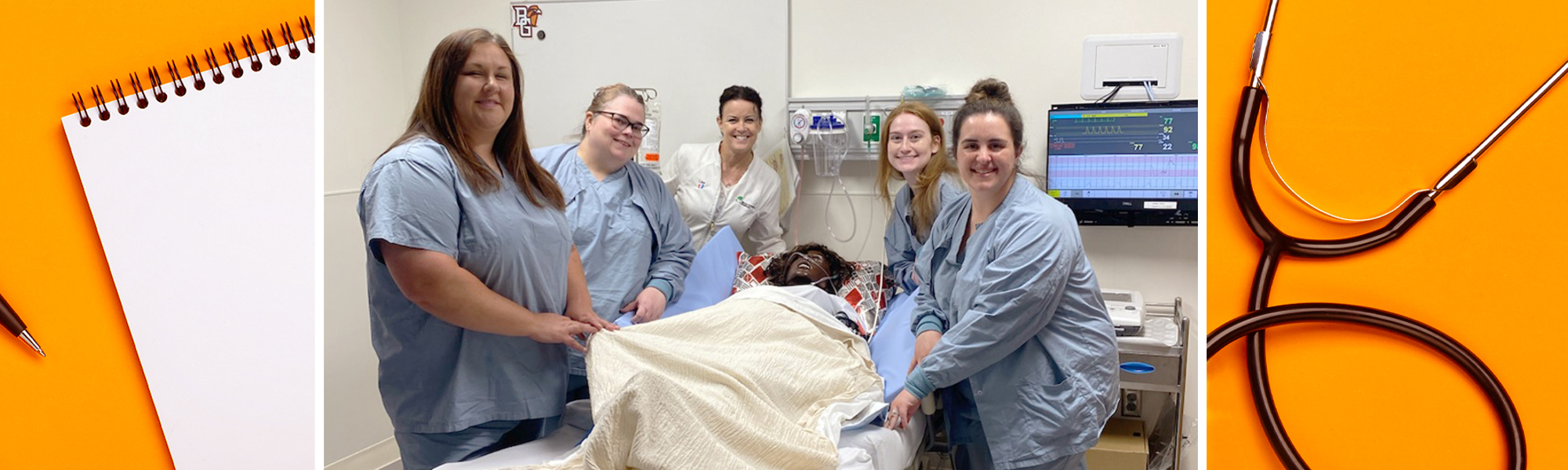 This training was for nurses who work with moms and babies during childbirth. Lisa Barndt, director of obstetrical services at WCH, and Holly Bollenbacher, director of obstetric services at Bellevue Hospital, worked together with experts from BGSU’s Nursing Simulation Lab, Dr. Lisa Jacobs and Dr. Kathryn Marie Hebert-Rodriguez, to create the training.