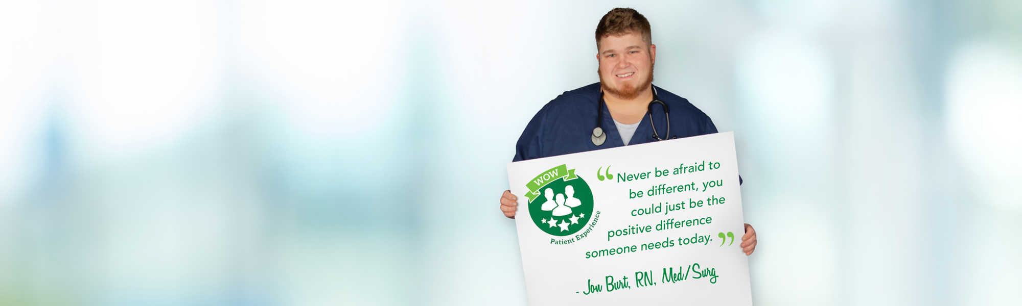 The year-end WOW award winner was announced at the October Leadership Forum. Jon Burt was selected as the year-end winner and will receive a cash bonus. Leading up to the award, Jon was nominated four times throughout the year and each of his nominations mentioned his dedication to patient care, patient satisfaction and his commitment as a nurse with the New Vision program.